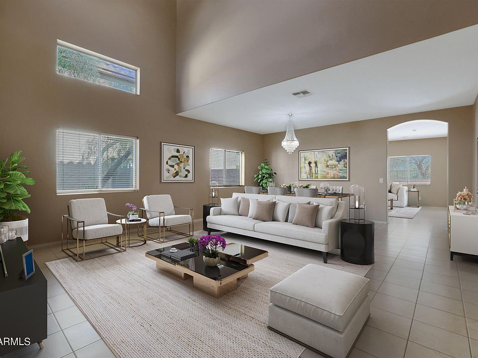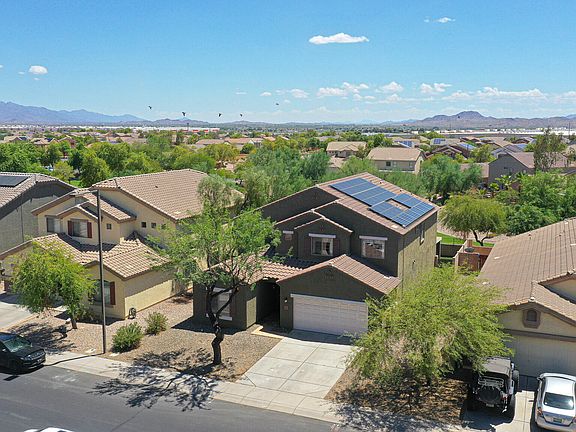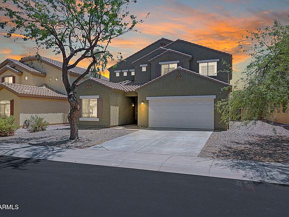 Step inside and be greeted by vaulted ceilings that enhance the open and airy feel of the main living spaces. The floor plan includes a convenient downstairs bedroom and full bathroom, perfect for guests or as a private home office. The well-designed kitchen and living areas flow seamlessly, creating an inviting space for gatherings. Upstairs, you'll find three more bedrooms, including a versatile loft area that can be transformed into a media room or playroom. The homeowner's suite is a true retreat, featuring a spacious sitting area, perfect for unwinding after a long day. You'll appreciate the tile flooring and upgrade laminate wood flooring throughout the whole home. Outside, enjoy Arizona's beautiful weather in your low-maintenance backyard, complete with artificial turf and an extended covered patioideal for entertaining or relaxing with no rear neighbors, just a peaceful greenbelt view. The 3-car garage provides ample space for vehicles, storage, or a workshop.