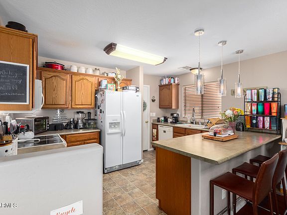 Keep cool and worry free this summer with newer AC and sparkling pool with new pump! This desirable 2-story property, located on a corner lot in the highly coveted Sundance Community, exudes charm and warmth with tile floors and a neutral palette throughout. The cozy living room leads to a kitchen outfitted with wooden cabinets, built-in appliances, a pantry, and a breakfast bar. A generous loft area provides ample space for entertainment. The home's primary bedroom includes a closet and an en-suite bathroom with dual sinks. Outside, a covered patio overlooks an immaculate backyard featuring artificial turf, a glistening pool perfect for leisure and relaxation. Don't miss out on this fantastic opportunity!