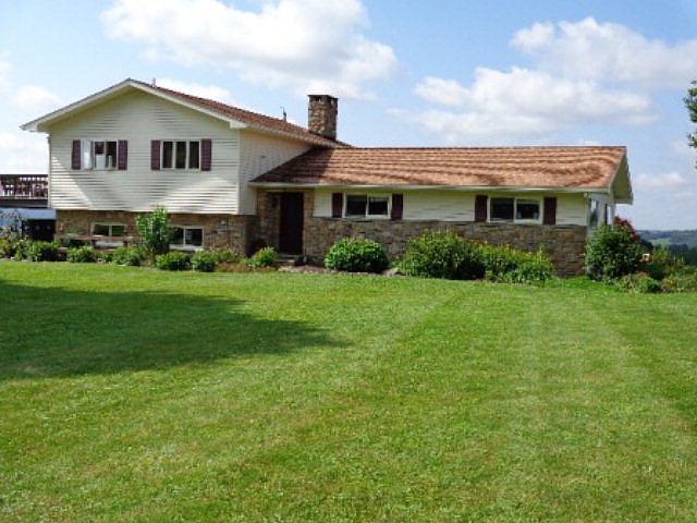 Breathtaking views from this beautiful Tri-level home. Walk in the spacious garage to find two closets and entry foyer to the house. To the right access to the lower level Family Room with woodburning fireplace, Laundry room, and two huge storage rooms. From the foyer to the left go to the middle level with 3 spacious Bedrooms including the master which features a huge bathroom and sliding glass doors to a private deck. A smaller Office or den is also on this level. On the upper level find the living room with hardwood floor and large kitchen /dining area overlooking panoramic views.