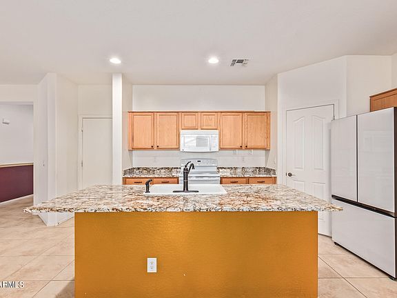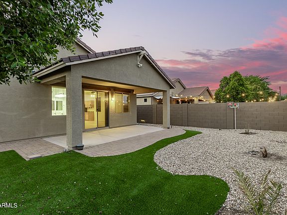 Presenting an enchanting 3-bedroom residence located in Watson Estates! You'll be greeted by an inviting living area that exudes a soothing ambiance through its neutral tile floor, designer color palette, & abundant natural light filtering through the sliding doors. The immaculate kitchen boasts wood cabinetry, designer granite counters, recessed lighting, a walk-in pantry, & a center island equipped with a breakfast bar, providing an ideal space for casual dining or morning coffees. Main bedroom offers a private bathroom with dual sinks & a large walk-in closet. The quaint backyard with its covered patio has the perfect setting for entertaining guests or enjoying a quiet morning! Professional landscaping gives you eternal greenery. What's not to like? This deal won't last long! Solar Savings..!!! save big time on APS elect offset! solar system is owned and will convey with sale!!! Compare and SAVE..!!!