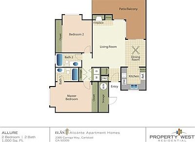 - Total interior livable area: 1,000 sqft