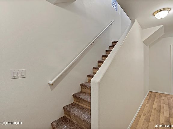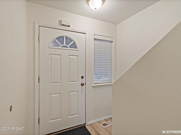 Bright and airy townhouse with reverse layout floorplan and open kitchen with stainless steel appliances. Brand new luxury vinyl plank flooring professionally installed throughout main areas as well as new carpet in all bedrooms. Primary bedroom located on upper main floor, plus two bedrooms with Jack and Jill bathroom on lower level next to oversized garage. Easy access to JBER and shopping.
