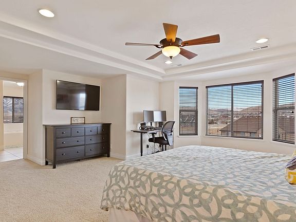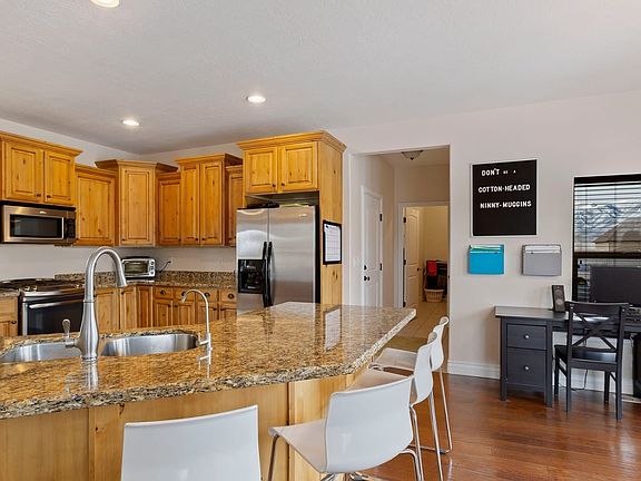 Newly finished walkout basement with built-in surround sound speakers in TV area. Fenced and beautifully landscaped yard with basketball court, in-ground trampoline and gas fire pit. Bedrooms have their own walk-in closets. Large Timbertech (better than Trex) deck. Large driveway with room for RV parking on side. Great view of park and valley in front. Nest thermostats and Rachio sprinkler controller. Large patio with outdoor speakers and wiring for a movie projector. Soft water and R/O system. Square footage figures are provided as a courtesy estimate only. Buyer is advised to obtain an independent measurement.