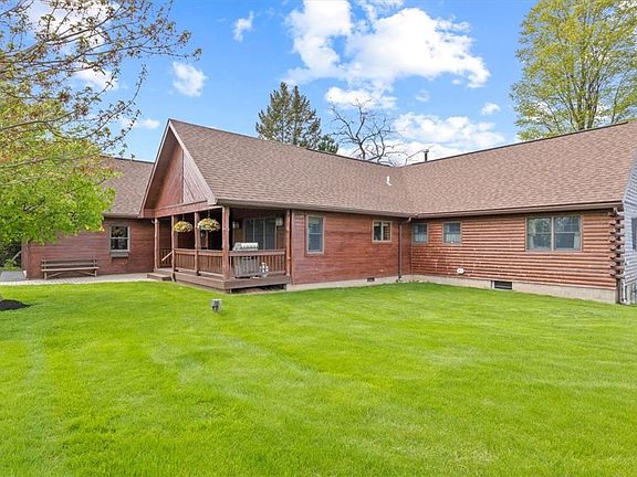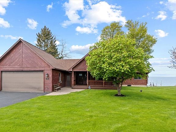 Discover this unique log cabin retreat nestled on the shores of Lake Ontario. This remarkable property features a beautiful flat lot w/ approx 100 feet of lake frontage & convenient stairs down to the water. Step inside & you'll find an open concept floor plan that's perfect for hosting family and friends. The great room boasts vaulted ceilings & a wall of windows that showcase stunning views of the water. The spacious eat-in kitchen is the perfect place to prepare meals & features a breakfast bar for additional guest seating. On the 1st floor, there are 2 bedrooms, including the primary bedroom w/ an ensuite bathroom. A grand loft space provides ample room for additional beds, a rec area, or an entertainment space. The lower level walkup displays a lounge area & an additional full bathroom. A garage w/ a rear overhead door provides easy lakefront access for all your water activities! Enjoy lazy summer days on the enclosed back porch or the large wrap around deck taking in the sights & sounds of the amazing view. This unique property is ideal for a weekend retreat or year-round living!