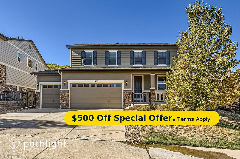Amazing home in the desirable Plum Creek subdivision. This 4 bed + office, 3 car garage home boasts an open floor plan plus a loft! Beautiful wood flooring throughout the main level, a gourmet kitchen with an oversized island and granite counter tops! The kitchen also features tile backsplash, a gas cooktop, double oven and huge pantry! Conveniently, all bedrooms and the laundry room are on the same floor! This home is perfect for entertaining as the outdoor space includes a 400 Sqft deck. Quiet golf course community, close to I-25 and downtown Castle Rock! Sky High patio at the back of the lot provide stunning view of Castle Rock and surrounding area! Professionally managed by Pathlight Property Management, the exclusive property manager for Home Partners of America, offering excellent customer service, 24/7 emergency maintenance service, online application and payments, and pet-friendly options. HOA occupancy restrictions may apply. The listing agent offers competitive rental co-broke commissions depending on the standard in the metropolitan area. Once notified of approval you will be required to submit a security deposit equal to one month's rent within 48 business hours to secure the home. Please reach out to the agent to view the home before applying or use our self-touring option if available. Experience modern living with this technologically advanced smart home, featuring intuitive automation, energy efficiency, and enhanced security, all seamlessly integrated for your convenience and peace of mind. To make your move-in smooth, trash, sewer, and water services are maintained in the resident's name. To better serve our residents, Pathlight is pet-friendly with no breed restrictions. The lease agreement outlines applicable pet fees. In most states, there is a one-time $300 non-refundable pet deposit and $30 monthly pet rent. Service and assistance animals are exempt from any restrictions or pet fees with proper documentation. If your home has a pool, there is a $100 monthly pool fee. To ensure the best care for your HVAC system and, in turn, the air quality in your home, a monthly $15 fee for bi-monthly filter service applies. Smart home technology is $24.95 monthly. Broker participation welcome, so please contact your leasing agent for more information. For additional information on our application process and lease fees, please visit our online help center. Advertised rental prices and promotions are subject to change at any time. The information contained herein has been obtained through sources deemed reliable but cannot be guaranteed as to its accuracy. Any information of special interest should be verified with Pathlight Property Management. **ALERT: If you see an ad for this home on Craigslist or Facebook Marketplace, please notify the listing agent. We do not advertise any of our homes on Craigslist or Facebook Marketplace and it is likely fraud.**