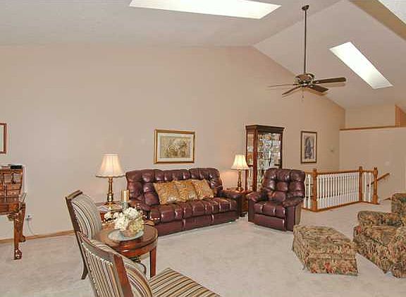 Remodeled kitchen with new granite countertops & oak flooring. First floor sunroom with access to a large deck, formal dining room, great room with vaulted ceiling, fireplace and skylites, and first floor master bedroom suite with walk-in closets and bath with a jet tub. The finished walkout basement has a family room with fireplace, wet bar, 2 additional bedrooms with walk in closets, and an office.