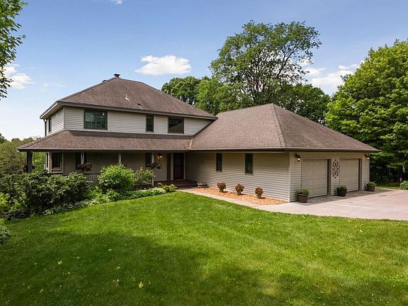 PRICED TO SELL! Country Living at its best on nearly 15 acres! Fall in love from the moment you drive in with the gorgeous landscaping, welcoming covered front porch, and endless views! Custom well maintained two-story home with Main Level master suite, large country kitchen is open to the living room featuring a fireplace surrounded by built-ins and dining room. Walk out to the inviting sun porch with attached multi-level deck overlooking peaceful, wildlife-filled acreage. Second floor features a large loft, two bedrooms and a full bathroom. Entertaining and game zone is in the lower level walk out. The lower level den can easily be made into a bedroom and there is a rough in for a future bath. Built-ins through-out the home. Bring the toys--there is plenty of room to explore plus extra storage in the detached 29 x 25 shed; it even has its own driveway! This wonderful home is on a tar road and in the award-winning Delano Schools!