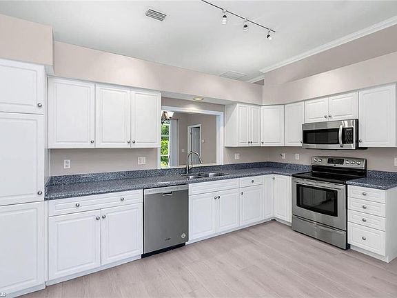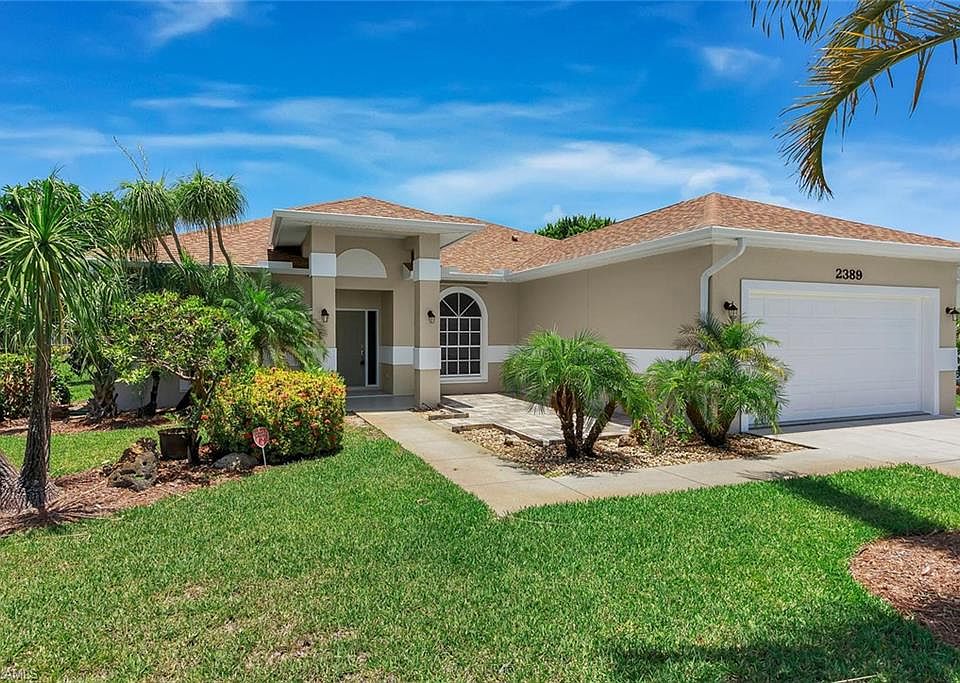 Come to the convenient, desirable Crown Pointe East neighborhood community to see this luxury home. Located across the street from its large lake. Clubhouse and amenities, this home has been meticulously maintained offering 3 BR, 2 Baths on an oversized lot with manicured landscaping. This Great Room, designed home has volume ceilings throughout, custom paint and window features. The spacious, eat-in kitchen has all stainless steel appliances, granite countertops and its equipped with loads of cabinets and storage. The laundry room is located conveniently by the kitchen. The master bedroom offers a walk-in closet and the master bath has "His and Her" basins and a glass-enclosed shower. Pocket sliders in the Great Room and dining room open to a large, private lanai and spacious rear yard. The two care garage is oversized and has additional storage and a work bench. Walk to the near-by Clubhouse, pool, fitness center and tennis courts. This home is only minutes to nearby Kings Lake Plaza with Publix, liquor store, restaurants, banks and is only a short drive to Olde Naples, 5th Ave. and 3rd Street dining and shopping, beaches and the famous Naples Pier.