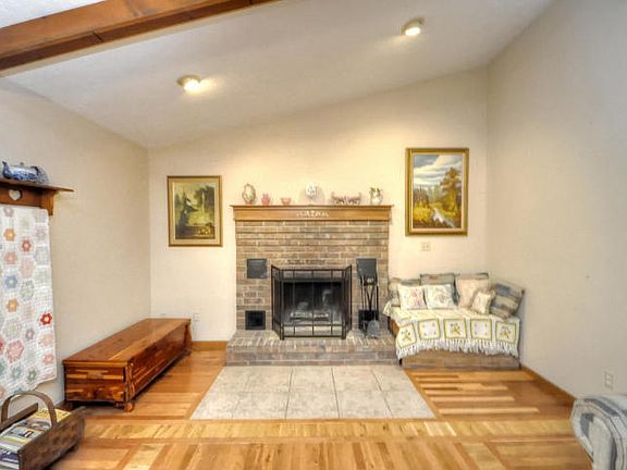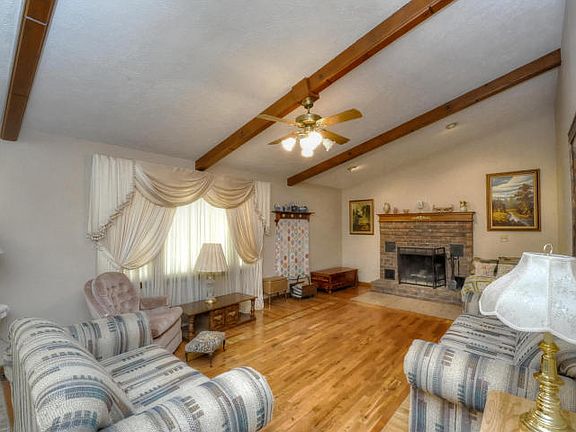 Perfect ranch home on over 1 acre features spacious living room with woodburning fireplace, hardwood floors and vaulted ceiling adorned with rustic beams, kitchen with tons of cabinets, hardwood and tile floors, breakfast bar, and large dining area with access to the back deck. Large master with nice bath and gorgeous tiled shower room, walk-in closet, and two more bedrooms that are larger than most homes with this square footage. The backyard is fenced and perfectly shaded by the numerous mature trees.