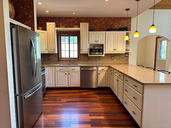- Bar, Cathedral Ceiling(s), Ceiling Fan(s), Dining Area, Hearth, Kitchen Island, Kitchen/Dining, Kitchen/Living, Living/Dining, Primary BR w/ BA, Natural Light, Natural Woodwork, Walk-In Closet(s), Walk-in Pantry