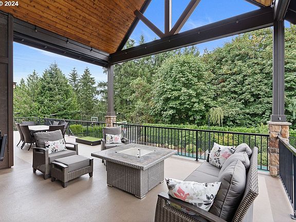 Incredible custom built at-home recreation haven by Renaissance Homes with epic sport court/entertaining decks, and all on a peaceful cul-de-sac backing to acreage! Sellers thought of virtually everything in creating this dream home from the 20 ft vaulted ceilings to the newly refinished vaulted deck, dazzling gourmet kitchen with oversized seating island, beverage cooler, and vast pantry and main level bedroom option, executive office, plus amazing 'game day' media floor. Enjoy covered spa and fire pit patios, a dedicated fitness studio with nearby full bathroom, bonus storage/shop space, and high ceilings/phenomenal craftsmanship! The upper level is beautifully thought out with a luxurious primary suite and spa bathroom with pedestal soaking tub, oversized bedrooms, fabulous walk-in closets, and more. Discover a life of comfort and play in the heart of Sherwood View Estates with easy access to Portland Metro amenities and Oregon's famed wine country!