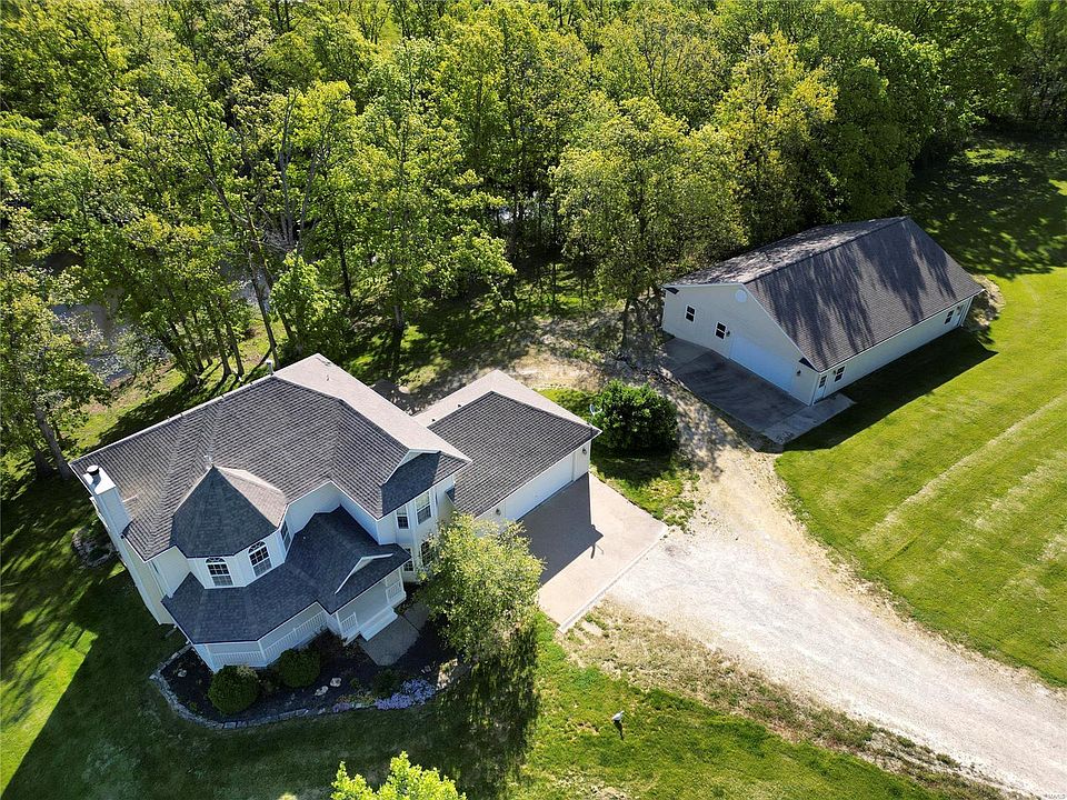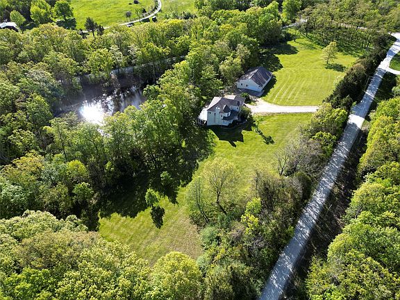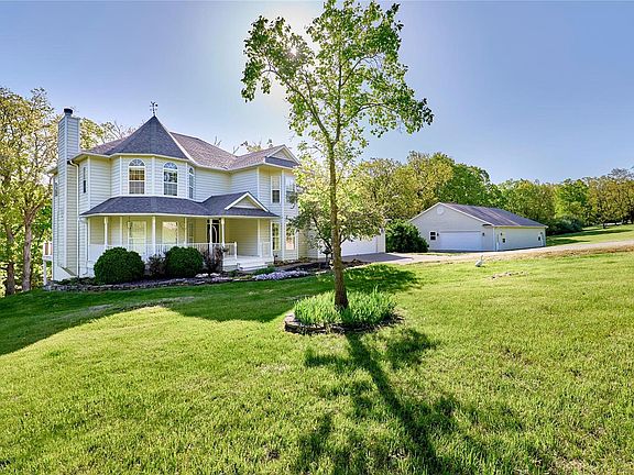 Showings start 5/11. This home is being sold "as-is" well below market value, needing a little TLC. Total finished just under 4,000 sq Ft 2 sty has wood flrs & crown molding thru out 1st flr. All 3 levels 9' high. Formal din rm & eat in kit, great room has wood burning fireplace, kitchen has tons of custom cab, Super lg laundry rm and office/den complete 1st flr, 3 bdrms upstairs - lg mstr has turrent ceiling, large bath, all bdrms have walk-in closets and many other closets thru out home. Lower level has family rm and rec rm with wet bar, addl bath and rm used as bedroom. Walk out to lg deck on 1st flr and lg patio on LL. 2+ Car gar & 2+c gar underneath = 4+ parking w/work area, AND MAN'S DREAM-41x60 climate controlled util bldg-concrete flr-heat/cool-toilet & sink-drive thru w/2 lg gar doors w/openers-water htr, attic fan, shelves, cabinets, windows, 2 walk doors, 200 amp panel-tons of room to park, work store boats/camper, all on 7 acres w/stocked lake and access to community lake.