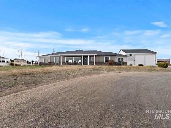 Incredible 2440 sq ft, 4 Bedroom, 2 bath home situated on .88 acres at the end of a cul-de-sac with 360 degree views of the mountains and Snake River Valley basin. Chef's dream kitchen with 10' center island, gas stove, double ovens and a huge pantry. 1600 sq ft, 16' ceiling plus vault, epoxy floor, fully insulated shop with 2 conditioned space bedrooms, observation loft and full bathroom with separate septic, ready for your toys, guests and your business. Award winning wineries, Timberstone GC, orchards, produce shed market and all the Snake River has to offer are just minutes away. Less than 15 minute drive to Caldwell and all the shopping and restaurants you could desire. 400 sq ft fenced garden area with established Apple and peach trees and blackberry and raspberry bushes. Bring your horses! No HOA Dues and very limited CCR's. Incredible producing well. Sit on your covered front porch looking out over the valley and snow capped mountains. Welcome home to your dream retreat in the Snake River Valley!