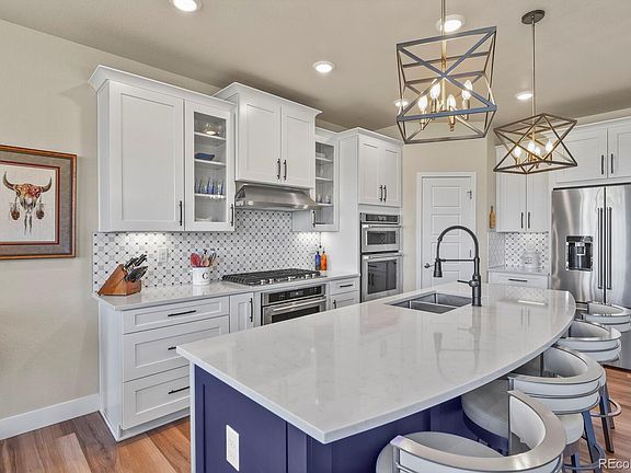 Gorgeous 4 bedroom home backing to dedicated open space. 3 car garage and a main floor study. This home feels brand new. Custom metal handrails and upgraded flooring. Nice open concept kitchen with huge quartz island. This is perfect for large gatherings or just quiet nights at home. Luxurious primary bedroom with spacious bath and walk in closet. Professionally finished walk out basement with fenced backyard. All appliances included so you can move right in. Convenient location with easy access to 470. Aurora address, but Douglas County Schools! Don't wait, this home is a gem and will go fast!