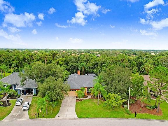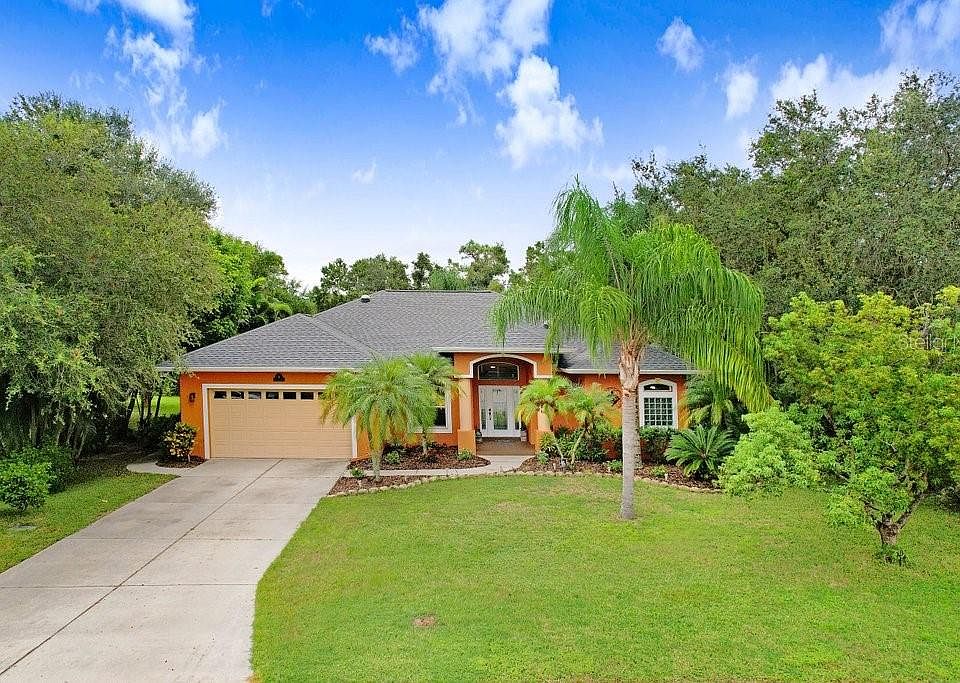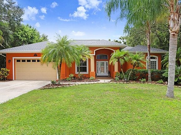 High and Dry after both Hurricanes. Preferred Lender is offering money toward buyer closing costs or a 1/0 temporary buy down This 3-bedroom 2.5 bath with a large den (easily convertible into a 4-bedroom home) has a 3-way split plan, which provides tons of privacy. Kitchen boasts of 42†solid wood cabinets, with stainless steel appliances, granite countertops and is open to the great room and wood burning fireplace. It doesn’t get much cozier than that. Living room has a lovely custom bookcase with designer niches and hard wood floor. Dining room also has hard wood floors, crown molding and a nice pass-through cabinet/ bar from the kitchen. Primary bedroom is spacious with large walk-in closets, hard wood floors and a suite style bathroom with roman walk-in shower, tumbled marble floors and accents, along with a 2 person jetted tub. Additional bedrooms and den have newly installed plush carpet. If this inside doesn’t blow you away, wait until you see the outdoor oasis. Whether relaxing or entertaining, this area is special. Situated on a half-acre with a nature preserve behind the home, the large lanai has an upgraded outdoor kitchen with a grill, polymer cabinetry and granite countertops. On top of that there is a trail in the back yard that leads to a babbling creek. Additionally, the home is situated with surround sound, central vacuum, custom closets, is wired for generator and has its own connection in garage. Tinted windows and split zone- air for energy efficiency. No worries about major maintenance as New Roof 2021, New HVAC, with new gutters, lanai rescreened 2022. Minimal HOA fees and NO CDD FEES! Located in an A-rated school district too! Area is convenient location provides easy access to a variety of amenities 1-75, beaches, Theme parks, professional sporting events and so much more. You are a short distance away from it all!