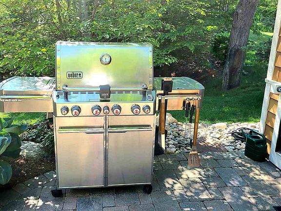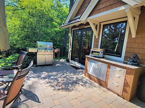 Stunning craftsman lodge style guest house/bungalow featuring knotty pine tongue & groove paneling, hickory kitchen cabinets, oak flooring, and hand crafted pine tables. Upscale design features throughout. Queen leather sleeper sofa and three-piece bath make for a functional and beautiful space. Smart TV with Spectrum cable/Wi-Fi. The cozy loft area features a custom designed ladder, ski railing, lighting and TV hook-up. HVAC split heating/cooling system. The dry basement area features a hot water tank, water filtration system, and storage for bikes. Soak in the beautifully designed landscaping that offers a high degree of privacy. The landscape features a herringbone concrete paver driveway, meandering stone paver walkways and flagstone patio area surrounded by native perennial tiered gardens and landscape lighting. Step down to relax around the gas fire pit complete with cushioned Adirondack seating and an oversized patio umbrella offering shade and comfort. Additional outdoor seating will offer you and your guests a memorable dining experience. Just outside the guest house you will find a beautiful granite topped cabinet with stainless doors and drawers for storing kitchen ware. For effortless grilling and meal preparations, a Breville Smart Oven and a top performing Weber Gas Grill are included. Hearthside Grove is a Class A Motorcoach Resort. Class A must be a modern, commercially manufactured and approved RVIA (Recreational Vehicle Industry Association) vehicle; minimum length - 28 feet, and less than 10 years old. Membership in the North Clubhouse is included with ownership. Ciderpress Club is not part of the Association and buyer is not required to join.