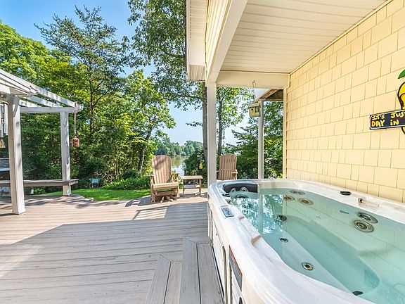 s: Adorable beautifully updated and maintained River cottage with gorgeous views of Mill Creek. As you enter the home you'll love the openness and flow of the kitchen, dining, and living areas all with water views. The bright kitchen is designed with custom cabinets, quartz countertops, a farmhouse sink, lots of beadboard throughout. Custom plantation shutters throughout. The ensuite primary bedroom is spacious and enjoys lovely views as well. Everyone will enjoy gathering in the sunroom filled with natural light. Sliding glass doors lead out to the deck with a pergola and even a hot tub. Well-manicured landscaping provides privacy creating a tranquil setting. Escape to the private balcony on the second floor to watch the sunset. The upstairs bonus space with a full bath offers many possibilities as a bunk/sleeping room. Insulated garage with tall ceilings, perfect for storing your boat. Additional features include Gas FP, Trex decking, 2016 new roof, vinyl windows, and siding, 2020 New HVAC.