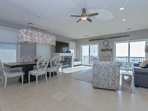 Incredible beachfront, Top Floor, WEEKLY SUMMER RENTAL avail 8/15 to 8/22 for $6K ONLY. Panoramic Ocean Views, bright, sunny corner condo with new granite and ceramic tile kitchen! Vaulted ceiling and ceramic tile great room with gas fireplace, overlooks the beach and ocean. Watch the sunrise with awesome beach views from your large balcony with table set and propane grill! Best views of Thursday night fireworks. 2 CAR GARAGE! 6 BEACH BADGES included. Rental sleeps 6 (1 King,1 Queen, 2 Twin beds). Furnished 1 Week Summer Rental Only. The only week left is 8/15 to 8/22.