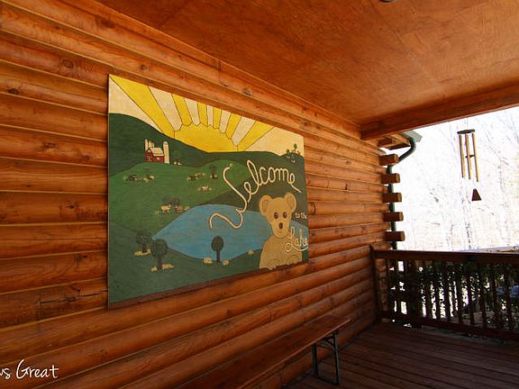 Impressive charm of a log home w/covered front porch, hardwood floors, natural woodwork, open kitchen w/beautiful cabinetry & granite counters, great room w/2story ceiling. Spacious 1st floor master w/walk-in closet & laundry, full w/o basement, concrete drive, oversized 2 car garage, 20 x 36 dock w/lift, party deck, floater in deep cove. IMMACULATE CONDITION AND MOVE-IN READY. A MUST SEE.