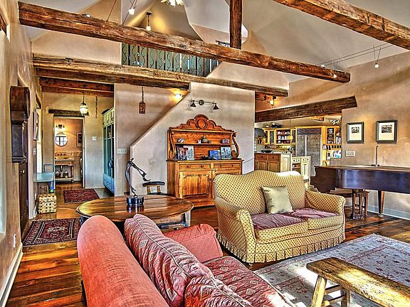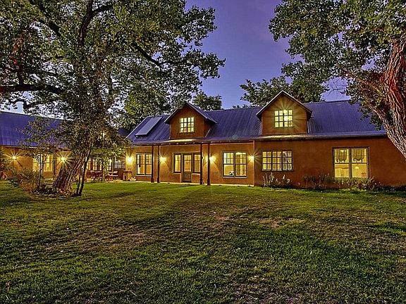 Fabulous Northern NM Adobe custom home with a passive solar design! So much attention to details and extra special touches in this gorgeous home! Beautiful Hand Hew Oak Beams! Awesome kitchen with lots of work space, granite countertops, custom cabinetry, high end appliances; Subzero, Bosch and Wolf range. Gorgeous oak wide plank wood and acid etched concrete flooring. Variance plaster walls, huge loft area, w/powder bath, great for family room or fourth bedroom. Green/Eco materials, beautiful custom La Puerta and Marvin Wood windows and doors. European tile in kitchen and baths. Slate, glass and tumbled marble tile in master bath. European style closets in bedrooms. Situated in mature cottonwood trees along in the Bosque Greenbelt, Bosque access! Peaceful Eastside neighborhood!