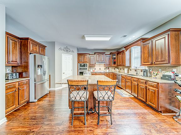 - Kitchen Features: Breakfast Bar, Cabinets Stain, Eat-in Kitchen, Pantry, View to Family Room, Stone Counters, Kitchen Island, Pantry Walk-In