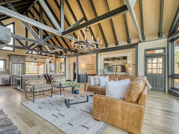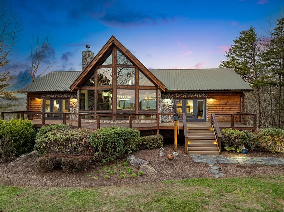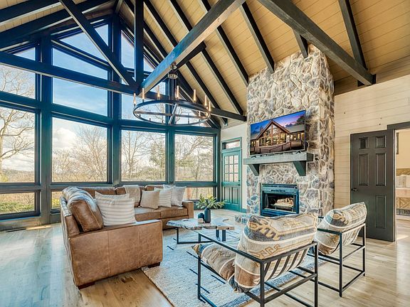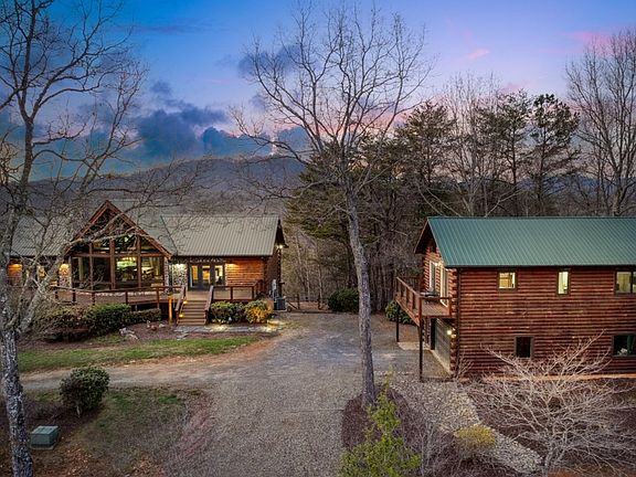 Discover this one-of-a-kind mountain-top oasis, offering breathtaking 360-degree long-range mountain views. Both the main home and the guest home come fully furnished and professionally decorated by Artful Ellijay. Both homes have also undergone a complete remodel, featuring high-end stainless appliances, custom cabinetry, luxurious granite countertops and genuine hardwood floors. Step into the open concept living area with exposed beams and an abundance of windows that flood the space with natural light, beautifully merging the outdoors with the indoors. The enormous kitchen features a workable island including a second oven and seating for four. The dining area seats eight where you can enjoy meals with friends and family with views of the Blue Ridge Mountains. Conveniently located near the kitchen is the spacious laundry room with loads of cabinet and counter space. The primary bedroom has an oversized modular closet and en suite with a lavish soaking tub. Down the hall are two additional bedrooms that share a full bathroom, featuring a tile shower and double vanities. All three bedrooms are located on the main level and offer direct access to either the expansive deck or the screened porch, enclosing comfortable seating, outdoor fireplace, TV and dining table. The finished basement adds a bonus/game room and full bathroom, perfect for entertainment and guests. Outside, relax in the hot tub or sit around the fire pit while taking in the unforgettable long-range vistas. The guest home over an immense two car garage is an exceptional addition to this property. Enter the open floor plan featuring a well-appointed kitchen and living area with a fireplace. This home also includes two sizable bedrooms that share a full bathroom as well as a half bathroom and laundry room. Other enhancements include a brand new furnace, a whole house generator and a holding tank for well water. This retreat sits on five private, level or gently sloping acres.