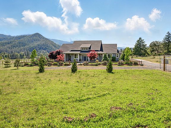 Breathtaking views! 2020 built home on 2.53 usable acres with strong well! Great care has gone into this property; you'll have a hard time choosing which patio is your favorite! Lovely wood floors, home office & open concept living. The Kitchen was designed for people to gather. Generous cabinet space, butler's pantry & walk-in pantry. Even the sink has a view! Functional floor plan w/ a laundry room that connects to the Primary walk-in closet. Granite counters, dual sinks & walk-in shower round out the Primary bath. Primary bedroom features more amazing views! This single-story home has two guest rooms w/ a jack & jill bathroom. There is also a half bath with easy access to the 3-car garage. The 3rd bay makes a wonderful workshop area. Attic access & storage above garage. Chicken coup, large storage shed for tools & toys, garden beds, fruit trees & plenty of space for hobbies. Close to wineries, rivers, lakes, hiking & quick drive to downtown Jacksonville. This is truly a rural gem!