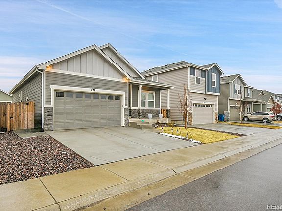 This stunning home in Lochbuie perfectly captures the charm of small-town living while offering convenient access to shopping, DIA, and just a 25-minute drive to downtown Denver. The spacious 3-bedroom, 2-bathroom ranch features an open and convenient layout that’s floods the living space with natural light. The eat in kitchen and island is a standout feature, equipped with stainless steel appliances, a gas range, and plenty of space for both counter seating and a dining table. Other features of this home include a large two-car garage, an easily accessible washer and dryer, and a generous primary bedroom with a primary in-suite bath. The true gem of this home is the beautifully landscaped backyard, complete with a concrete patio—ideal for hosting warm, memorable gatherings. Right in the middle of new builds this property is completely ready for you to make it your forever home without having to pay to complete landscaping! ***FHA assumable loan available at 4.250%***