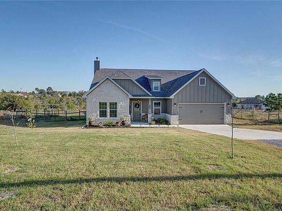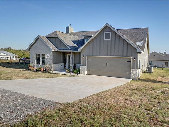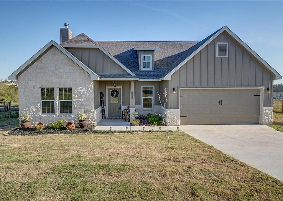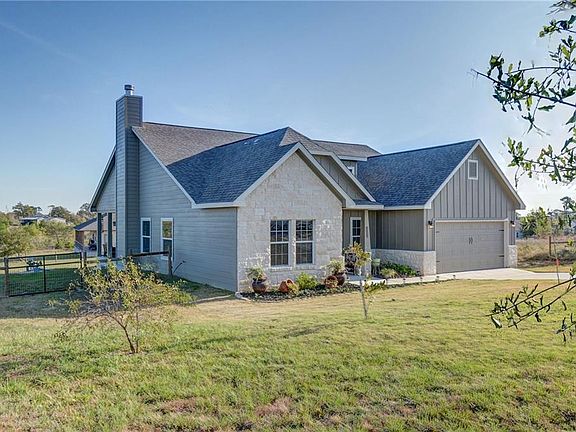 Impeccably built in 2020, elegance and comfort in this spacious open concept floor plan, 3 bedroom, 2.5 bath modern farmhouse style home full of many amazing features. Welcoming foyer opens to the spacious open concept kitchen/living area with beautiful full stone fireplace that makes a grand statement in the living room and is perfect for entertaining. Beautiful custom kitchen with granite countertops, upgraded cabinetry with soft-close drawers, pendant lighting and large pantry with custom pantry door for the cook in the family. Upgraded cabinetry with soft close drawers in all three bathrooms. Stunning wood plan ceramic tile flooring through out with carpet only in bedrooms. Primary suite is spacious with tray ceilings. Enjoy the soothing, large, spa like bathroom with granite countertops and large walk in closet. Relax on the large covered back porch with 100% fenced backyard. There is room to add a swimming pool and or shop building if desired. RV parking and hookups available. The home is 30 minutes from Austin, Circuit of Americas, Tesla factory.
