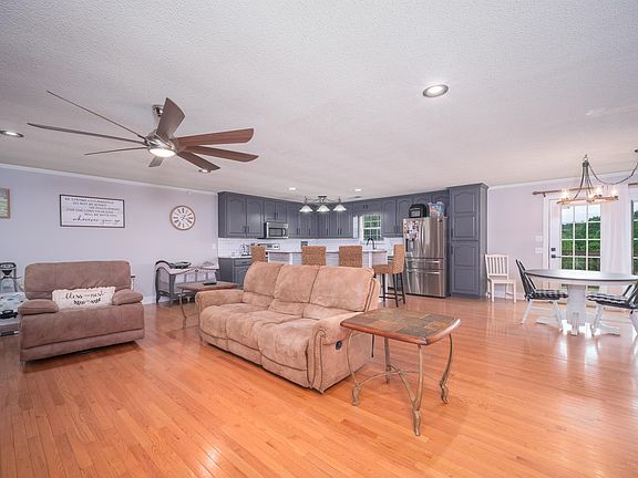 Take a look at this beautiful home that belongs in the Southern Living Magazine. Country living at its best on 4 spacious acres. Open concept with a remodeled kitchen with stainless steel appliances and electric fireplace in living room. 3 bedrooms/2 full baths and large laundry room on the main floor. The master suite is huge with a newly remodeled bathroom and walk-in closet. Full basement with a play area/game room or 2nd living room, gas fireplace, kitchenette, bedroom, full bath, safe room and 2 car garage. Enjoy the wrap around porch and swing. Plenty of room for a big garden and play area or pool in the back yard. Hurry before this one is gone! **Home was withdrawn from the market for a week to allow for upgrades/repairs to gravel road.**