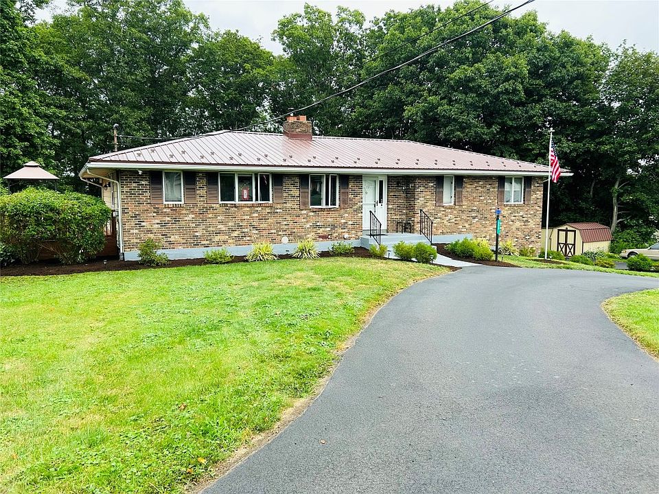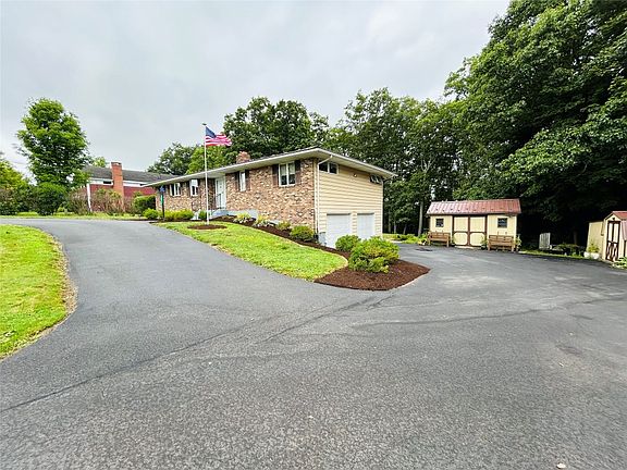 OPEN HOUSE SUNDAY AUGUST 4TH - 11AM TO 1PM! Lovely brick ranch with superb curb appeal. An open-concept floorplan with generously sized rooms. Two cozy fireplaces. Maple kitchen with solid surface countertops and center island. Formal dining area. Hardwood floor. 1st floor laundry room. Large primary suite with jetted tub and walk-in shower. Huge family room. An office with convenient built-in wall shelves & cabinets that is currently being used as a 3rd bedroom. Heated two-car garage. Circular blacktop driveway. Hardwired generator. Water softener. 20 x 13 Concrete patio. Upper deck. Two sheds. Ductless A/C unit. Newer Metal roof. 200 amp electric service panel. New Rinnai energy efficient on-demand heat/hot water boiler. A beautiful country property in a nice setting. Easy access to Highway 88 and Upper Front Street retail corridor.