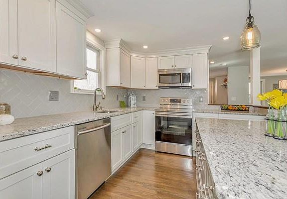 This Garrison Colonial has been completely updated from top to bottom & the attention to detail is apparent throughout. Brand new kitchen & baths, ship-lap, custom built-ins, smart home features, energy efficient and low maintenance amenities inside & out. A new front & side porch give this home great curb appeal. The spacious mudroom with built-ins welcomes you to an open floor plan ideal for today's lifestyle & entertaining. The bright white kitchen has granite counters, stainless steel appliances & an island open to the living room with fireplace and dining room. The finished lower level has a large family room and bonus room/laundry area. Three nicely sized bedrooms are on the second floor & a large full bath with a double vanity. There are gleaming hardwood floors on the 1st & 2nd floors. This home is move in ready with a huge patio overlooking the flat, professional landscaped private backyard. The oversized 13' x 13' shed has tons of potential with vaulted ceilings & power.