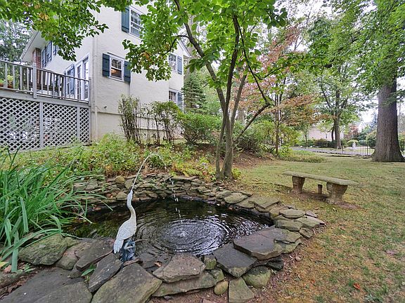 4 BDRM 3B classic colonial home. Huge 27,583 sqft lot on natural setting. Formal dining room, eat in kitchen, private sun porch, gas fireplace, finished basement walk-up attic. Property has mature specimen planting, great bird watching, tranquil fish pond, detached garage, plenty of off street parking and more... Newer gas boiler, recently installed Mitsubishi central air, roof 5 yrs., inlaid hardwood floors. Rare opportunity beautiful as is with room to grow.