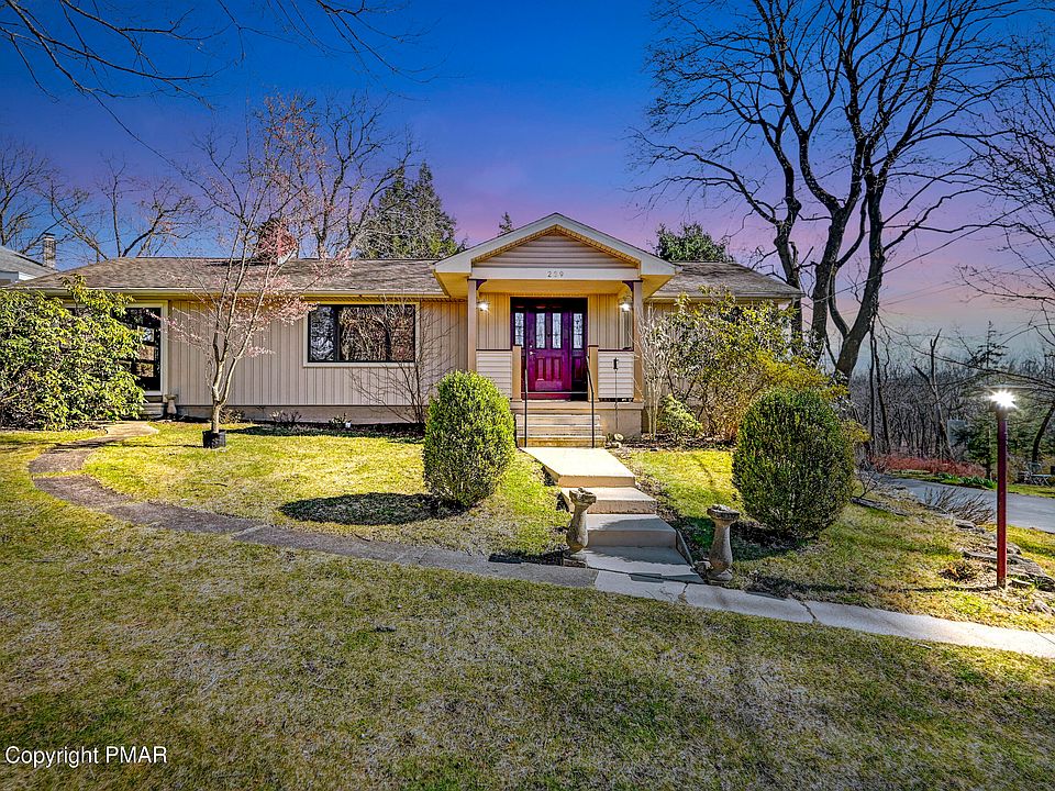 Three Bedroom Three Bath Charming Ranch in the Heart of East Stroudsburg Borough. This Home features Incredible Craftsmanship and Detail with an Expansive Kitchen Area with Granite Countertops. Custom Built Maple Cabinetry throughout with plenty of room for Storage and Entertainment. Situated on a Picturesque Half an Acre Lot with Large Outdoor Patio surrounded by Lush Mature Landscaping in a tremendous location just minutes from Pocono Medical Center, East Stroudsburg University and Delaware Water Gap. Spacious open floor plan perfect for entertaining Inside, Outside or in a Fully Enclosed Sunroom with Front and Rear Sliding Glass Doors. Radiant Heated Ceramic Floors throughout the Kitchen and much MORE. You must see this Incredibly Charming Home in person to truly appreciate. The primary bedroom has a large private bathroom with double sinks and a custom doorless walk-in shower. The living room is lined with original Oak hardwood flooring and brick fireplace. The basement is semi-finished with a second fireplace. There is a separate laundry space featuring a laundry chute from the main floor bedrooms. This home has an attached garage and an attached car port. This unique home is a must see!