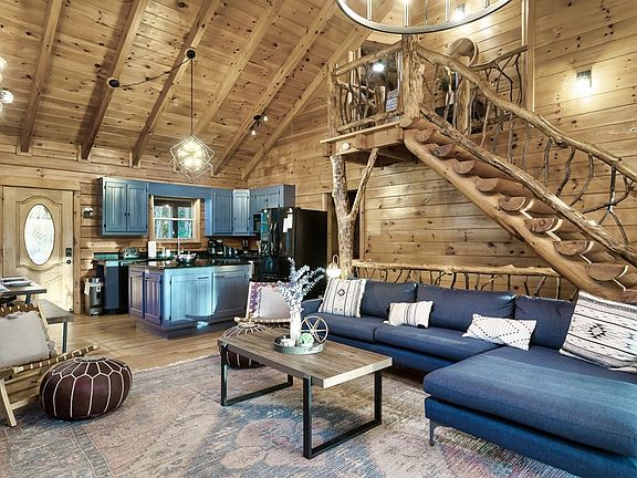Discover the perfect blend of rustic charm and refined living in this stunning log cabin, offering breathtaking views of the Blue Ridge Mountains. Flooded with natural light, the spacious family room welcomes you with soaring ceilings and a massive stone fireplace, creating an inviting atmosphere for gatherings or cozy evenings in. The gorgeous primary suite is a true retreat, featuring a spa-like ensuite bath complete with a glass shower, soaking tub, and beautifully curated finishes. The well-appointed kitchen delivers both style and function, boasting quality amenities including a gas stove, ample workspace, and warm, rustic touches throughout. A fully finished basement expands your living options with a full bedroom, bathroom, game room, and additional flexible spaces-perfect for guests, entertainment, or a private getaway. Outdoor living is equally impressive: relax on the front porch, unwind on the back deck while taking in the mountain views, or enjoy year-round comfort in the covered hot tub pavilion and new expansive deck. A fenced yard adds convenience for pets and play. This exceptional property offers the serenity of mountain living with all the comforts of a thoughtfully designed home-rustic, refined, and ready to enjoy. Top performing Airbnb with exclusive “Guest Favorite” title.