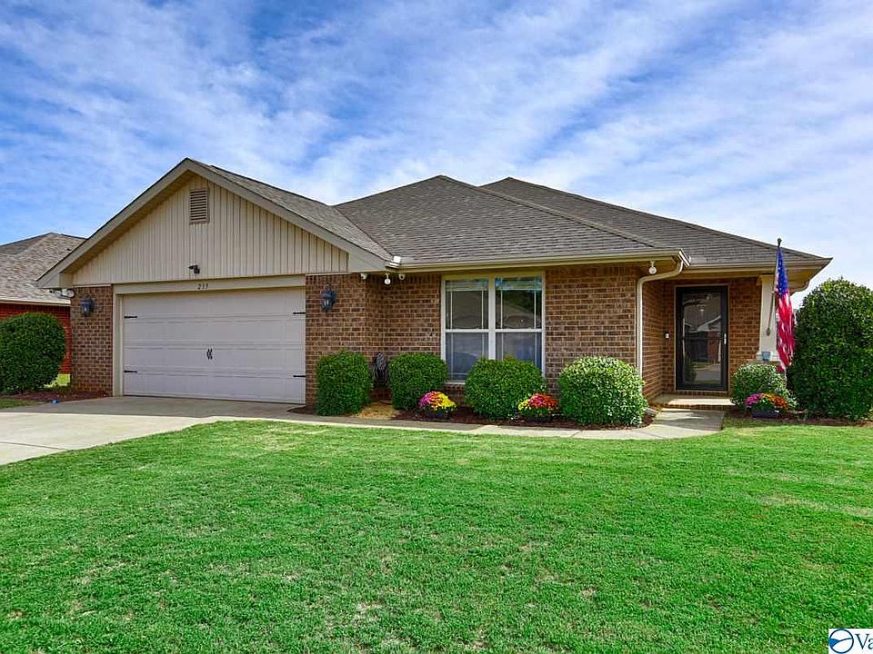 239 Fields Pond - Charming full brick ranch with open floor plan featuring Hardwoods throughout the main living areas, new carpet and recent paint! Great Room with tray ceiling and ceiling fan. Flex space for home office or play room. Kitchen with island offers an abundance of cabinets plus stainless steel appliances. Isolated Master bedroom suite with tray ceiling and ceiling fan. Large Laundry with cabinets. Covered porch overlooks privacy fenced yard with fire pit. Lake community offers walking trail. SMART Home Features: Ring Doorbell, 8CH DVR Cam. Syst. & Surround Sound Wiring (speakers excluded). Move right in and start enjoying all this home has to offer.