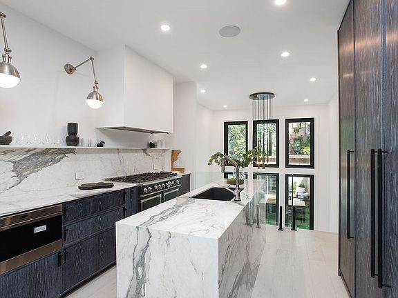 Your dream awaits with this fully renovated home. Four levels of absolute luxury and designer quality in prime downtown location on desirable Garden St. 4 spacious bedrooms, 2 full bath and 2 half baths with lower level fully finished for additional living space. Brand new Anderson Eagle windows, 8 ft doors throughout, and all new mechanicals including electrical, plumbing, and HVAC. Gorgeous 7.5 inch white oak engineered flooring with amazing light & 9ft+ceiling height throughout. The custom kitchen includes a gorgeous Panda marble waterfall island with Brizo fixtures, Elkay sink, La Cornue 5 burner stove, sub zero wine fridge with 59 bottle capacity, 36 inch sub zero side by side fridge/freezer, Bosch dishwasher, Wolf drawer microwave, and custom cabinetry. Bathrooms are adorned with marble tile, Rolfe bathtub, RH vanities, Brizo fixtures, and Kohler Reve toilets. Laundry room (on second floor) is complete with full sized side by side Maytag w/d. Custom lighting by Arteriors, custom closets throughout, and an expanded WIC in the master bedroom. In addition, the master bathroom has a large walk in shower, double vanity, and free standing soaking tub. The master suite also includes a wonderful private terrace for two, an ideal setting for that morning coffee. Roof deck and serene landscaped yard with side suite complete this urban oasis. Blocks to PATH, bus, shops, restaurants, waterfront, parks, schools, and Washington St, short distance to Holland and Lincoln Tunnels, and NJ turnpike.
