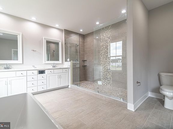 Available Home on 1+ Acre wooded lot. This luxurious community offers dazzling, upscale home styles with 1 acre+ lots and are close to the VA line in Berkeley County. Open up your living space with the Camelia model a spacious 4,500+sqft, 5 bed, 4.5 bath rancher with wainscoting, an open concept floor plan, and 10ft ceilings on the main level. The kitchen shines with upgraded appliances, a Quartz island with a built in cabinet microwave, double ovens, and touchscreen cooktop. The primary bedroom is on the main level and has access to a rear porch. The primary bath boasts a double door bathroom, with huge walk-in double shower, soaking tub, and ceramic tile flooring. You will want to snuggle up with a good book in front of the gas fireplace in the 14x16 sunroom - which has access to both rear porches with ample entertaining space! The upper level of the home is just as large as the main level! There are an additional two bedrooms with their own bath. Entering the upper level, you will find a rec room with wet bar, a storage room, and a quiet sitting area. Other features include recessed lighting throughout the entire home, crown molding, and LVP flooring. On the exterior there are cedar shaker shingles, stone work, 3 car side loading garage, and a 12x40 front porch. Windows line every inch of this home so let the natural light flow through! Schedule your showing today to see what our newest community has to offer!