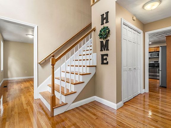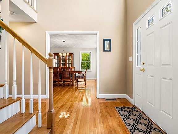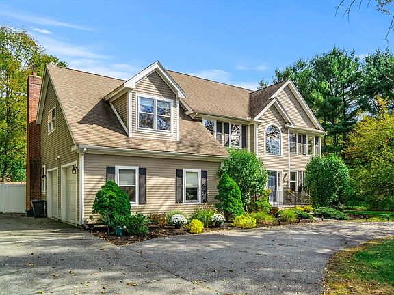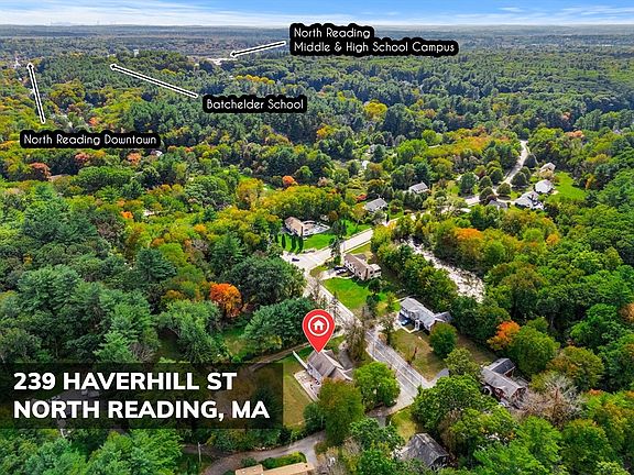 Welcome Home! This beautiful 4-bed, 3-bath Colonial is nestled in the heart of North Reading, close to downtown, Batchelder school, middle/high school,& Harold Parker. Step inside to freshly painted interiors & gleaming refinished hardwood floors that flow throughout. The first floor features an inviting front-to-back formal living & dining room, a large kitchen with stainless steel appliances, a large island, & room for casual dining. The spacious, sunlit family room with soaring vaulted ceilings opens to a stunning back deck, complete with recessed lighting, a ceiling fan, space for an outdoor TV, and a cozy fire pit—perfect for relaxing & large grass area.There's also a convenient half bath & a quiet office space. Upstairs, unwind in the primary suite with walk-in closets, bath with a soaking tub & shower, & an additional walk-in closet/laundry area. Three generous bedrooms & another full bath complete the second floor.The finished basement offers a gym and hang out space.