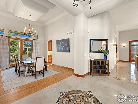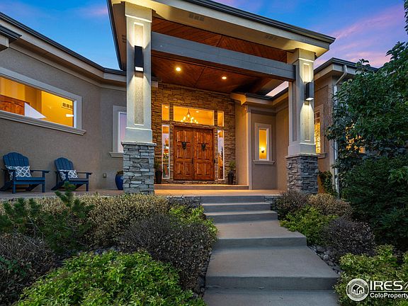 Unbelievable ranch style home w/ walkout basement + detached building borders 2 sides of open space overlooking Douglas Reservoir + foothills. Incredible setting in quiet (25 home) subdivision on paved roads just 20 min N of CSU. Oversized rooms, quality finishes, meticulously maintained, gourmet kitchen w/ eating bar + 8 x 13 breakfast nook, 24 x 8 sunroom, 2 fireplaces, marble and wood floors, mature landscaping, several private outdoor spaces including hot tub and fire pit areas, 3200+ sq ft shop w/ heated floors, 3/4 bath, + 2 x 14' overhead doors. Main heating and A/C replaced 2020, H2O heater 2019, shingles 2020, dishwasher 2023, microwave 2022,