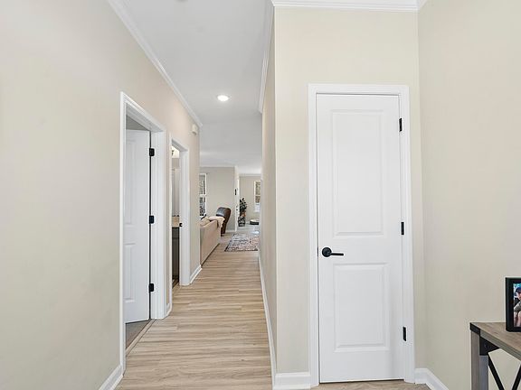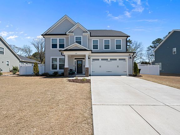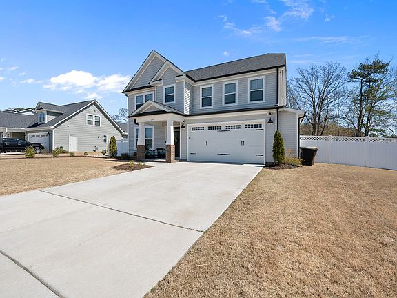 This spacious single-family 2023 build in Clayton, features 5 bedrooms and 3 full bathrooms, offering a comfortable and versatile layout. The home is perfect for those seeking ample living space, with generous bedrooms that provide privacy and comfort. The primary suite includes an en-suite bathroom, with dual vanities, a soaking tub, and a separate shower. The well-appointed kitchen includes modern appliances, quartz countertops with plenty of space, and a breakfast nook that overlooks the backyard and patio. The open-concept living and dining areas provide a welcoming space for entertaining or relaxing. Natural light floods the home through large windows, highlighting the stylish finishes throughout. The home also includes a 2-car garage, providing space for parking or additional storage. Outside, you'll find a well-maintained yard, ideal for outdoor activities or enjoying the beautiful NC weather. The property is located in a quiet neighborhood, offering a blend of suburban tranquility and easy access to schools, shopping, and major highways. Some of the standout features of this house include the tranquil view of the forest and woods in the backyard with gate access to the wood line. This house is one of the few houses in the neighborhood that offers a naturalistic view of nature. The potential for personalization in the generous backyard space such as a step-up deck and garden can easily be envisioned. The location of the house offers immediate access to the neighborhood trail which ties into the Sam Branch Greenway and Clayton Municipal Park only a short distance away which can all be accessed through paved pathways from the house. A little further on the paved pathway leads you to Downtown Clayton with fantastic restaurants and shops.