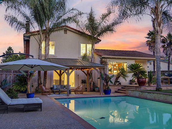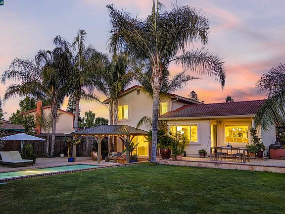 Tucked away w privacy on a quiet cul-de-sac you will find this UPDATED light filled tri-level home in the heart of San Ramon. RESORT STYLE BACKYARD which is an ENTERTAINER’S DELIGHT, incl a sparkling POOL, HOT TUB, deck, lawn area for play, fruit trees, & gorgeous landscaping on 12,665 sq ft. Chef-grade kitchen w/ granite counters, Thermador counter depth fridge, 6-burner gas stove, pantry & breakfast nook, completed by an oversized island. Expanded family room off the kitchen w recessed lighting, dramatic vaulted-ceiling w exposed wood beam & views to the backyard. Heading down to the bottom floor is the BONUS ROOM w fireplace & access to the back yard, LAUNDRY Room & BATHROOM. Ascending to the 3rd level is the primary bedroom suite w en-suite bathroom. THREE SECONDARY bedrooms share the remodeled hall bath. Central heat & air w 3 zones for year round comfort! The interior of this well-kept home has been recently painted. Tankless water heater, 3 storage sheds, expansive side yard w room for an ADU, Boat/RV. Located within walking distance to all 3 top-rated schools, close to parks, trails, shopping, dining, Bart & Fwy access.