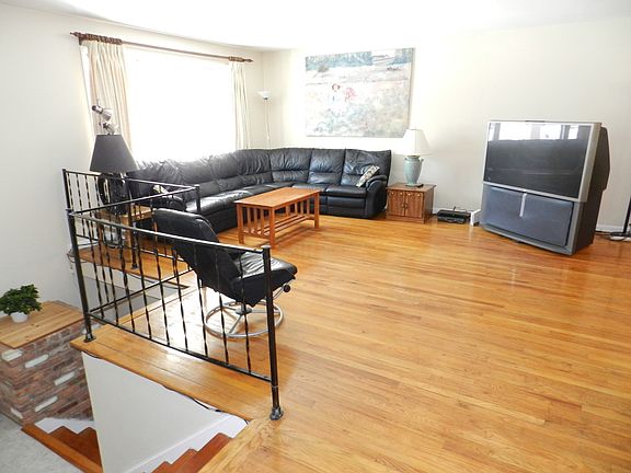 Bright & spacious! LR w/HW floor & picture window. Formal DR w/chair rail & HW floor. EIK w/ wood cabs, CT floor and door to deck. Lower Lev Family Room with parquet floor, floor-to-ceiling brick FP.Lower Level Office with parquet floor, double closet & sliders to yard. In-Law Suite offering Bedroom w/parquet floor & large window, Full Kitchen w/dishwasher & Full Bath attached to Laundry Room. Upstairs MBR Suite w/hardwood floor, walk-in closet & attached Bath w/stall shower. 2 Additional upstairs Bedrooms with hardwood floors & double closet. Full Hall Bath offering granite-topped double vanity & beautiful tilework. Deck for outdoor relaxation & entertaining.