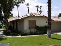 This home at MCC has one of the best unobstructed views available, overlooking a lake and the 9th green of the East course. The Santa Rosa mountains loom in the distance. It is only a block from the clubhouse, tennis and fitness facilities. Upgrades include wall and ceiling texturing, upgraded kitchen cabinetry, newer appliances, granite counters and backsplash, porcelain tile floor and upgraded lighting. A third bathroom has been added and the washer and dryer were just replaced. Unique...