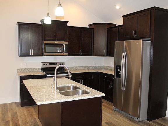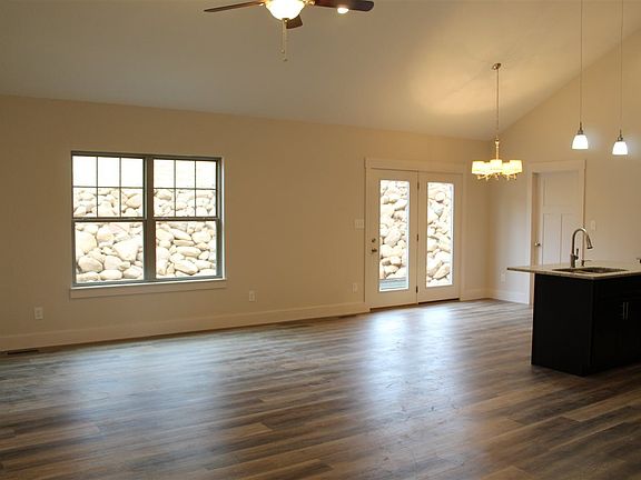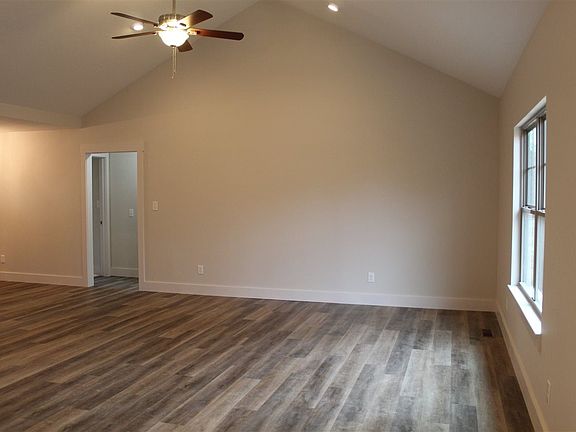 Admire all the deer as you relax on your covered front porch of this new construction home in Edgewater Estates. Vaulted ceilings welcome you into the spacious living area of this 3 bedroom, 2 bath home with an open floor plan. Mocha cabinets with work island/breakfast bar and granite counter tops accent the kitchen along stainless appliances. The master suite also has a vaulted ceiling, walk-in closet and His & Her vanities. This property has a second lot that has a separate drive with an approx 20X40 level parking area that can be used for parking your boat and RV.