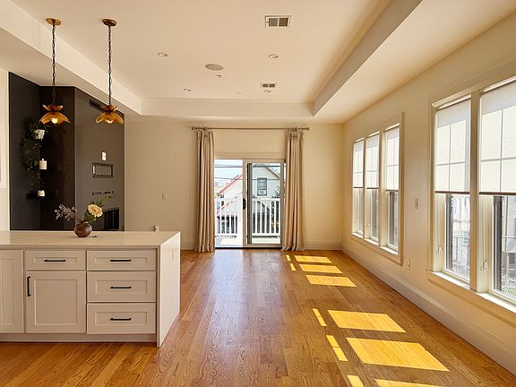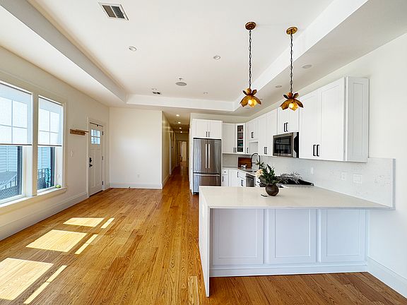 AVAIL AUG/SEPT: Elegantly reimagined in 2022, this grand Victorian was transformed into four refined residences Unit 1 offers over 1300 SF across 3BR/2BA. Stately entrance with brick wall leads to unit featuring soaring ceilings and a gracious entry with designer wallpaper, lighting, coat closet, and laundry. Two bedrooms and a full bath lead to a sunlit rear living/dining/kitchen retreat with stainless appliances, slide-in gas range, white cabinetry, and quartz counters. The living area is anchored by a custom gas fireplace with integrated TV and shelving, opening to a private covered balcony. The front primary suite spans 300+ SF with a bedroom/sitting area, generous closet, and spa-like bath with double vanity. Bespoke finishes throughout wallpaper, drapery, and lighting set this home apart. Rear entrance with granite steps waiting for your herb garden. At the crest of Eagle Hill, blocks from the T, Greenway, and airport, with beloved parks, cafes, and waterfront at your doorstep. Tenant pays heat/electricity/hw/WIFI/Cable. First, one month security due at lease signing. Tenant must have excellent credit and verifiable income. Pets negotiable with excellent app on case by case. $100/mo dogs, $50/cats added to lease