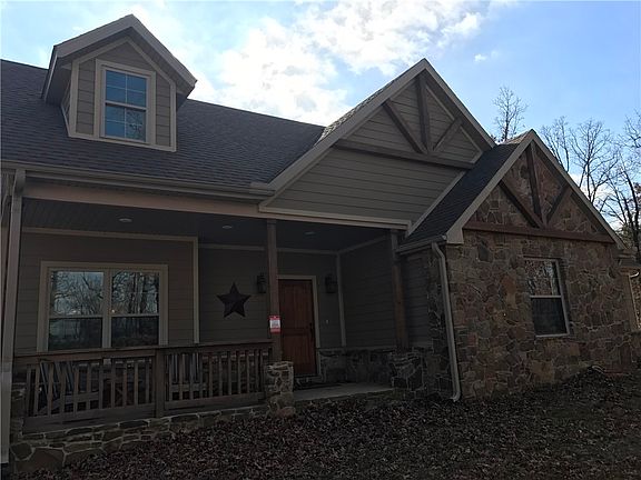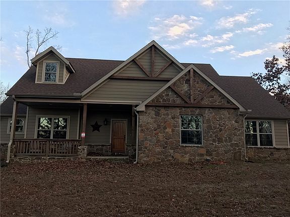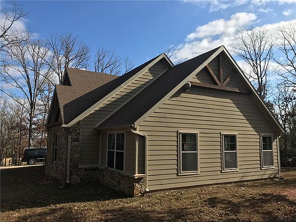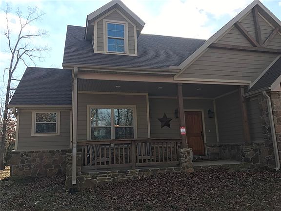 20 +/- of wooded oasis with 2329 Square foot Cabin/Lodge Residence just 30 minutes from Fayetteville or Springdale. 3 Bedroom, 2.5 Bath with large bonus room / loft. Massive sunroom, beautiful custom touches including pass through fireplace, outdoor firepit, spiral staircase and high end granite throughout. Brand new stainless appliances convey (minus w/d) Furniture negotiable. Seasonal creek. Quiet personal oasis just minutes to town, or great hunting retreat!