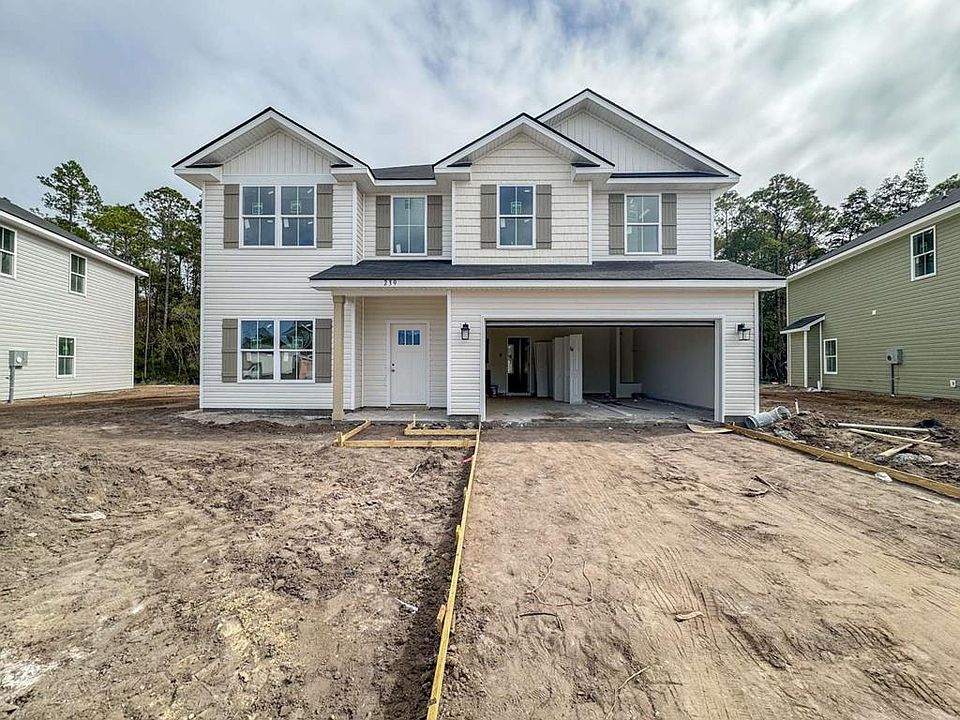 Kohen plan in Griffin Park of Hinesville! Well-established neighborhood with 2 community pools, playground & sidewalks throughout! The Kohen plan features an impressive two-story foyer entry with a dining room adjacent. From the dining room continue through a passway with a walk-in pantry to the kitchen. The kitchen features granite counters & stainless appliances. Enjoy views of the family room with fireplace & access to the patio from the island. A bedroom & full bath lie just off the family room, as well. Upstairs find 3 additional bedrooms, hall bath, laundry room & the owner suite! Granite vanity counters in all baths! The owner suite in the Kohen includes a vaulted ceiling, a private bath with two vanities, a soaking tub & shower as well as access to a large walk-in closet. Estimated completion December 2023.