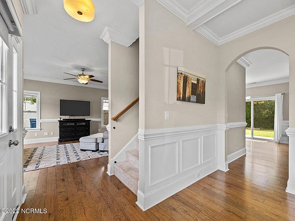 Tucked away in the sought after neighborhood of Marsh Haven is this lovely 2 story 3 bedroom/2.5 bathroom home with a 2 car garage. From the kitchen pantry to the master walk-in closet you'll notice that storage abounds in this well maintained home. Nestled on over a 1/3 of an acre with a partially fenced back yard you'll enjoy many evenings grilling on the back patio. Driving up to the home you'll quickly notice the exceptional details of this Riptide Home. Numerous details include the exterior brick detail, carriage style garage door, the coffered ceiling of the dining room, built in full-length mirror & trey ceiling of the Master Bedroom. Many of the rooms are freshly painted, the dishwasher was installed in 2021, Enjoy evening walks to the dock to take a leisurely kayak paddle on the creek or dip your fishing pole into the neighborhood pond. As if that isn't enough to love this home then you'll love how close you are to Camp Lejeune, Jacksonville, Wilmington and Topsail Beaches! See this home for yourself and you'll find your next spot!