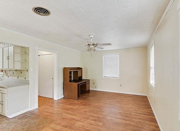 This 4 bdrm 2 bath home is ready for its new owner! Laminate wood & ceramic tile flooring, new windows w/faux wood blinds, partially updated kitchen w/corian counter tops, 6 burner gas range/oven & pedal valve sink, living room & additional den area, lg master. Covered back patio, park-like fenced/private back yard, fruit bearing trees, rear yard access w/covered parking, det laundry room could also serve as a workshop, security system. All this & more in a non flood zone and high demand school district.